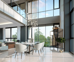 Tresor didesain dengan jarak atap floor to ceiling setinggi meter, membuat kesan mewah rumah ini semakin terasa.